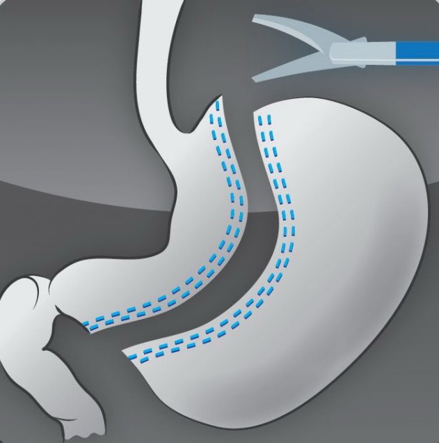 Лапароскопическая продольной резекция желудка – это операция для лечения ожирения основанная на принципе рестрикции, то есть сужения верхних отделов желудочно-кишечного тракта с целью ограничения количества поступающей пищи.